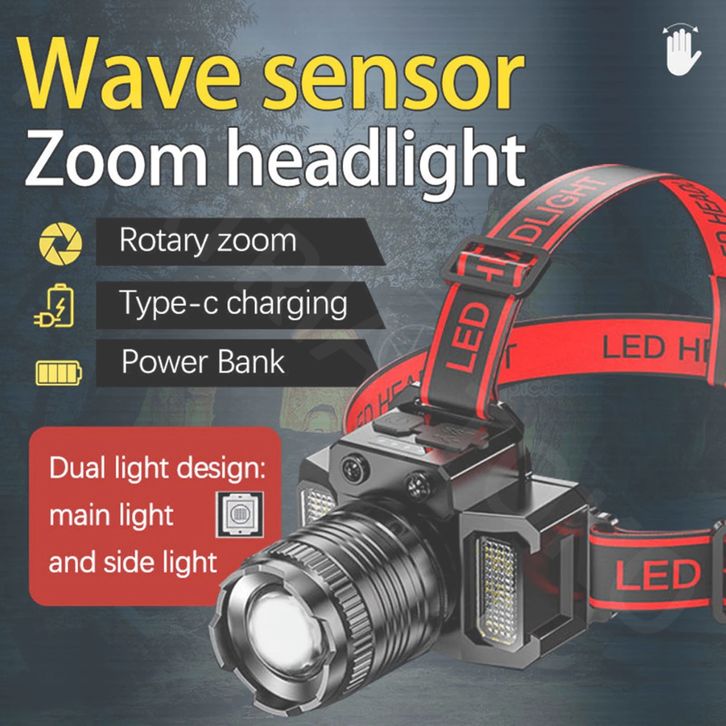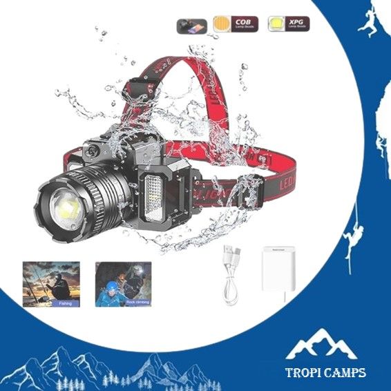 Senter Led Kepala Super Terang Headlamp F-T51 Induksi Sensor Gerak Zoom Rotating/Super Terang 5000 Lumen