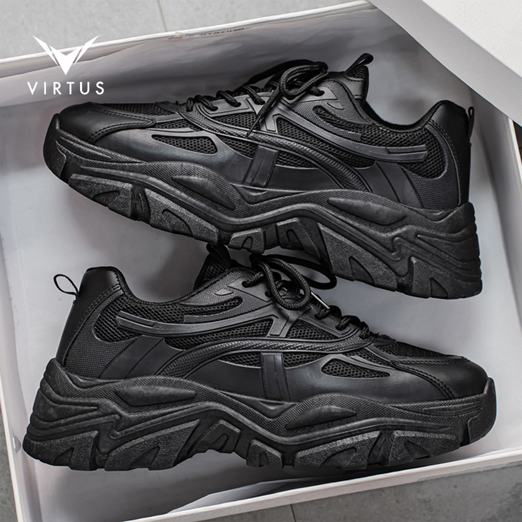VIRTUS Wear 39 - 44 SCAR Sepatu Sneakers Pria Sekolah Full Hitam Olahraga Lari Casual Tali Kerja