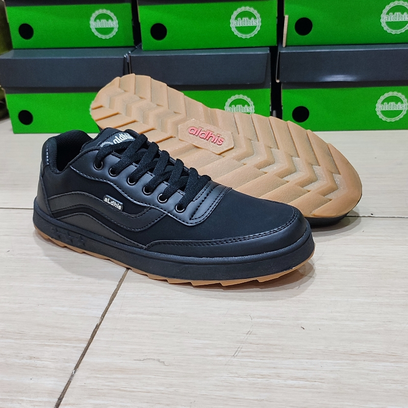 Aldhis Sepatu Sekolah Hitam Sepatu Pria Sneakers Original Formal Kuliah Kerja Full Black Gum