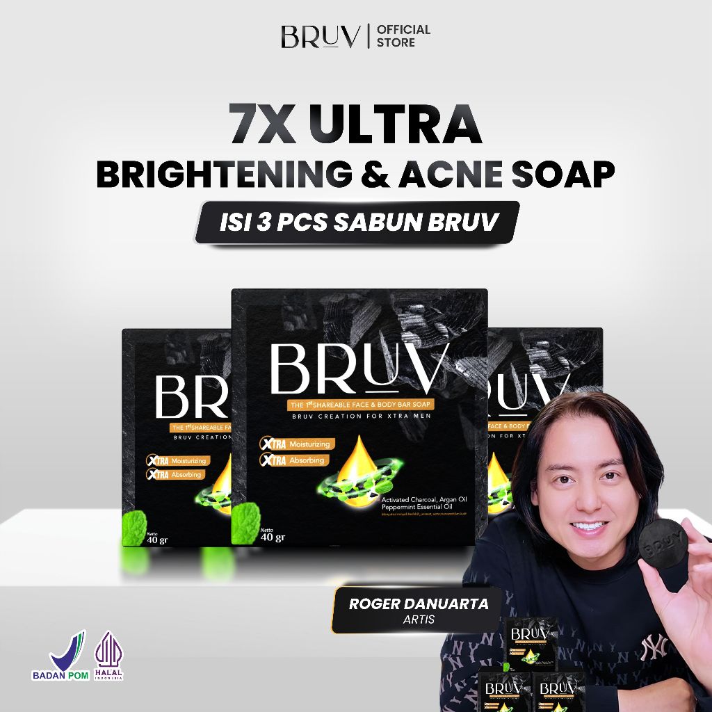 BRUV Brightening & Acne Soap 3 pcs - Sabun Cuci Muka Pria Mencerahkan Kulit Wajah dan Mencegah Jerawat Khusus Kulit Pria
