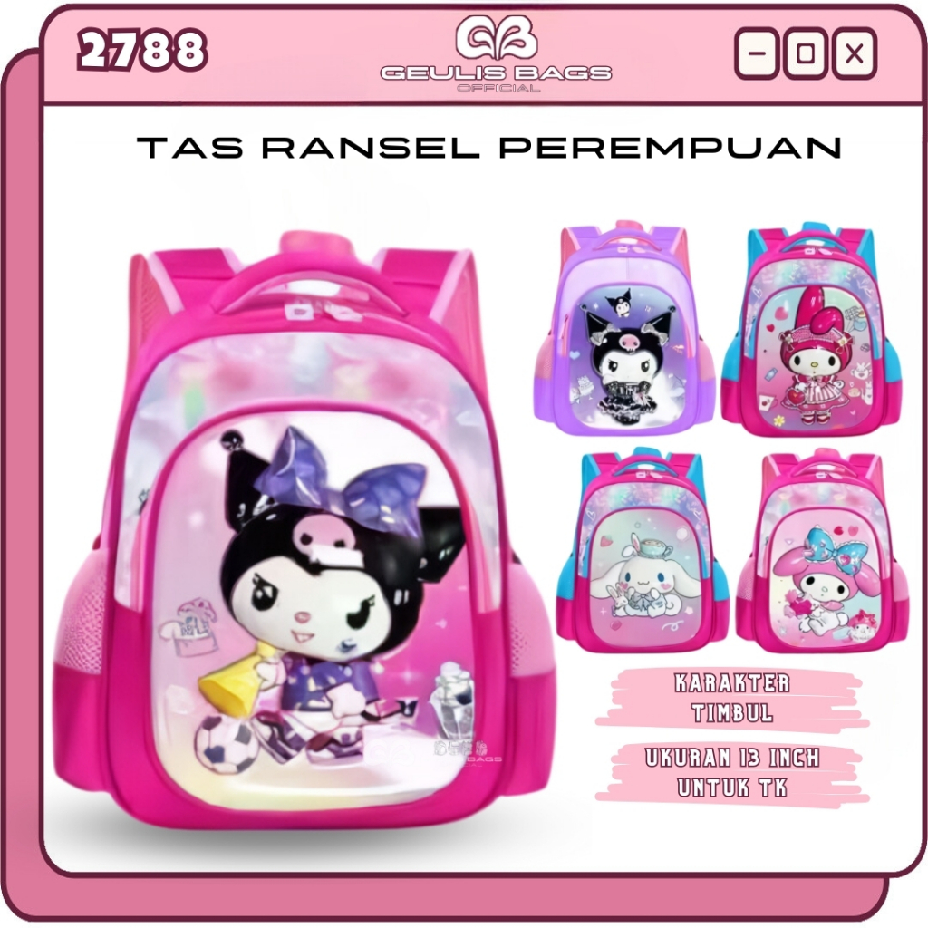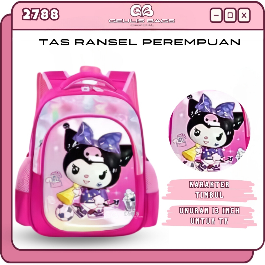 GEULIS BAGS Tas Ransel Sekolah Anak TK PAUD Perempuan Backpack Kuromi Terbaru GLB 2788