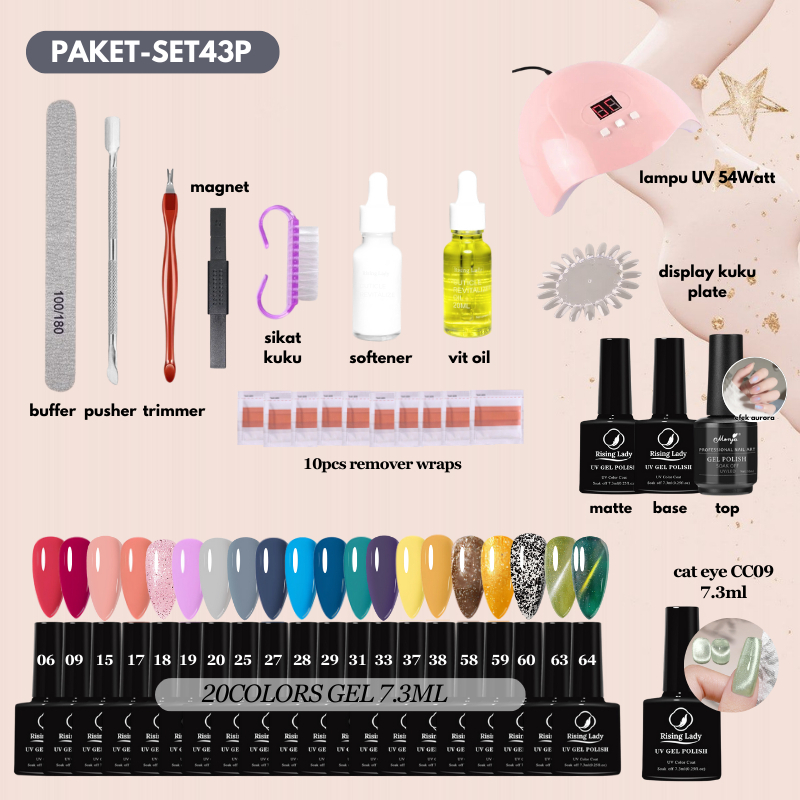 SET NAIL ART LENGKAP 37IN1/43IN1/73IN1/SET KUTEK GEL NAIL POLISH UV/UNTUK NAIL ART PEMULA