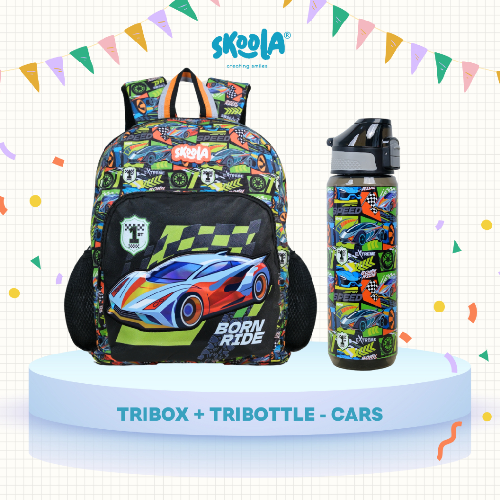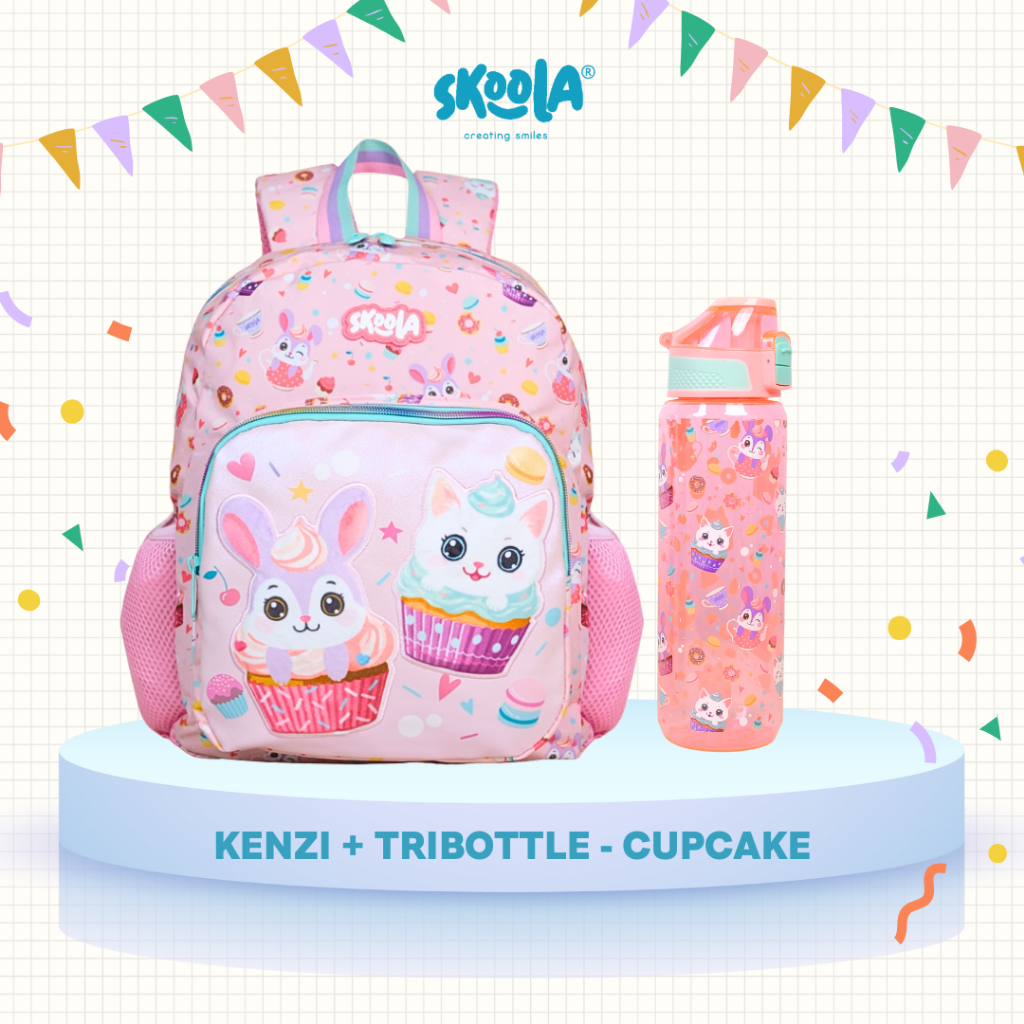Skoola Bundling Promo - Tas Ransel Sekolah anak Perempuan Laki-laki TK Ransel + Botol Minum - Kenzi+Tribottle Bundle