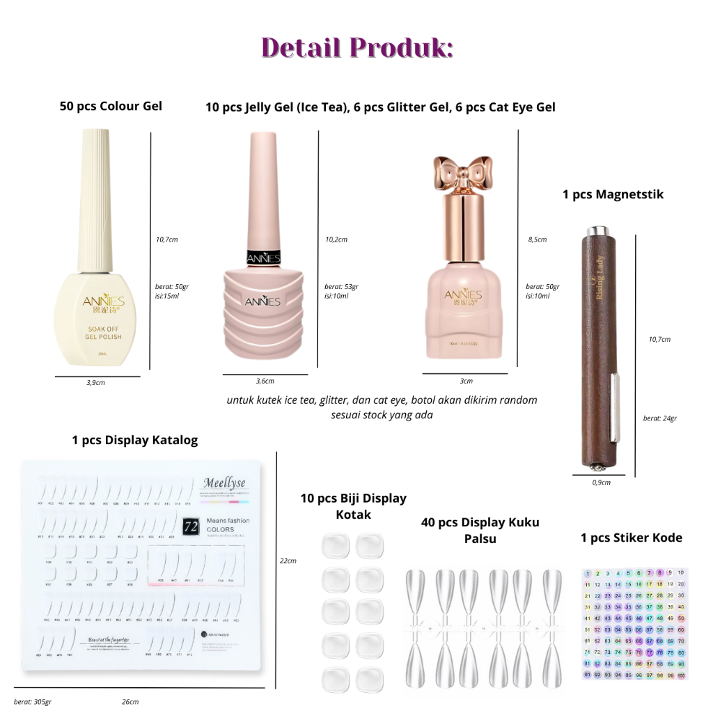 Paket Annies Set Gel Nail Polish 72Warna Lengkap Free Display Katalog Fungsicoat Magnetstik / Kutek Gel Warna Jelly Cate