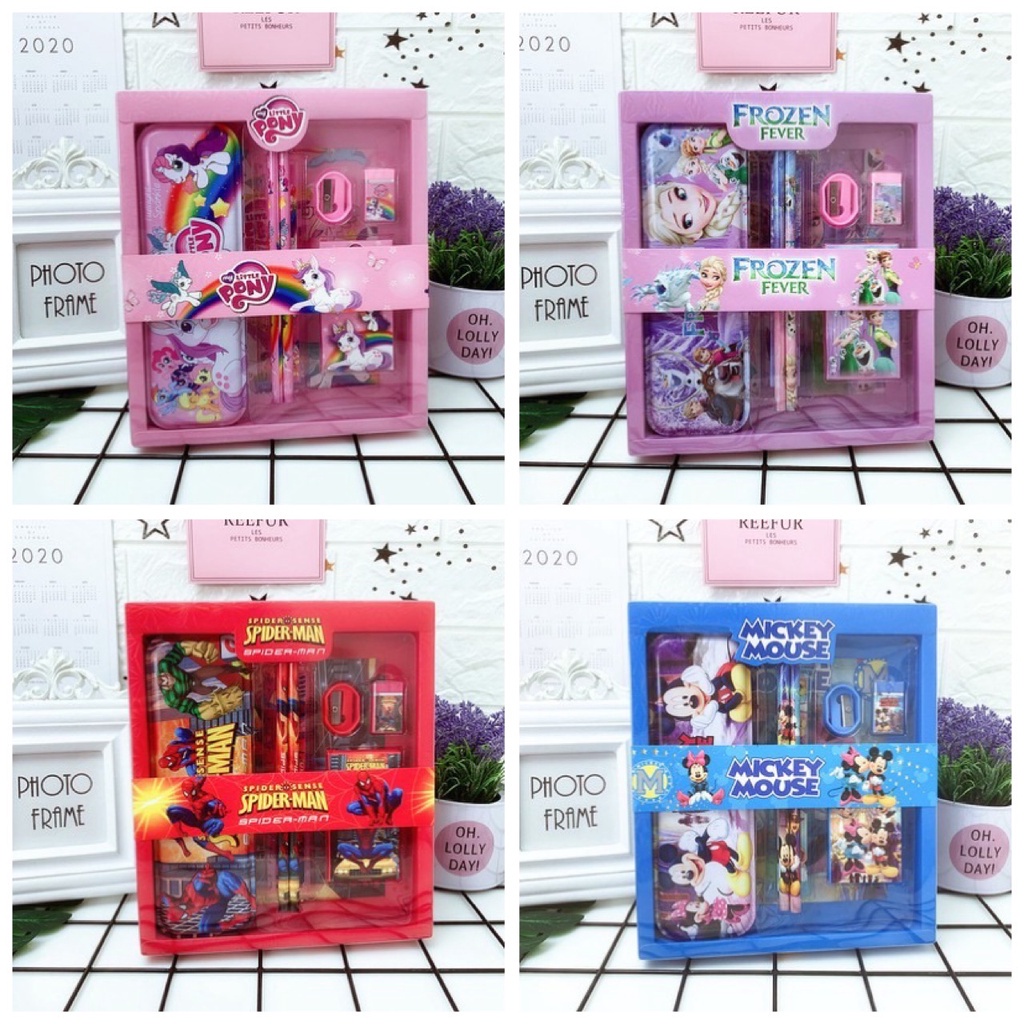 Paket Alat Tulis Anak Stationery Set Sekolah Karakter Spiderman Frozen Unicorn Mcqueen Cars Souvenir Goodie Bag Gift Kad