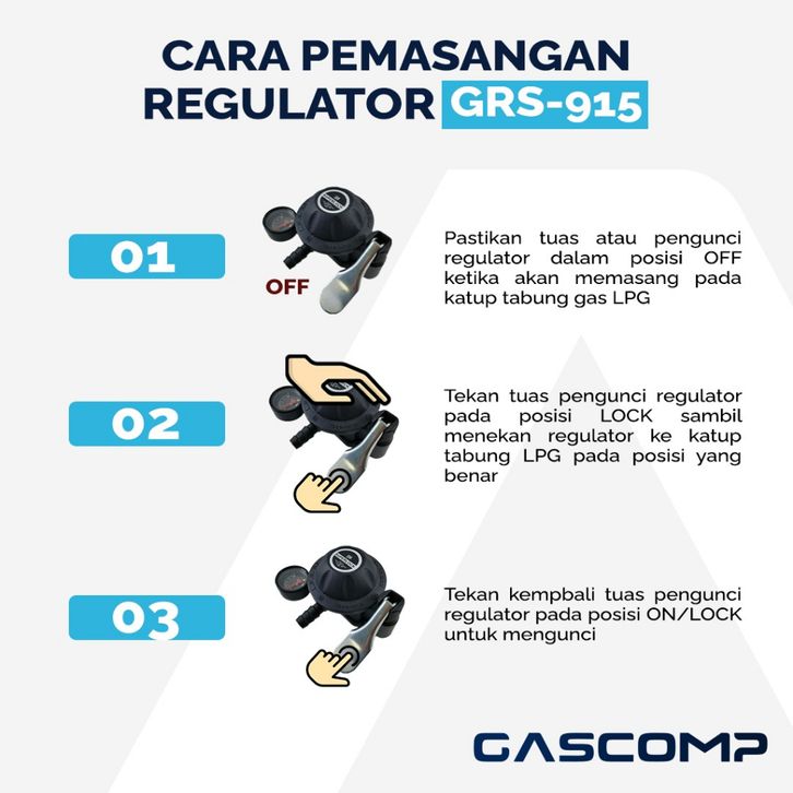 GASCOMP Paket Regulator Superlock 01 Klik (GRS-915) - Regulator Kompor Gas Superlock Regulator Gas Anti Bocor Otomatis R