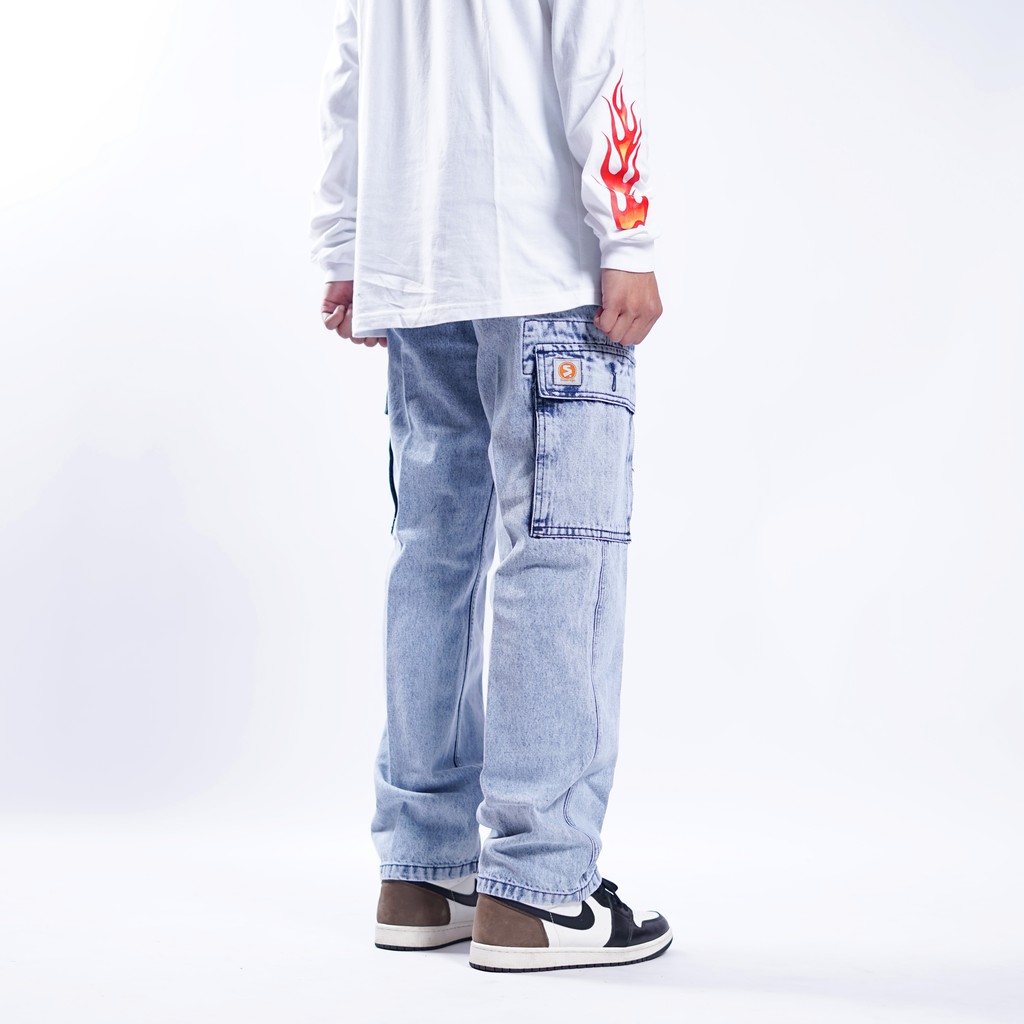 SUPEREGO CELANA CARGO PANTS JEANS REGULER DENIM SNOW LIGHT BLUE V2 SCPDW03B