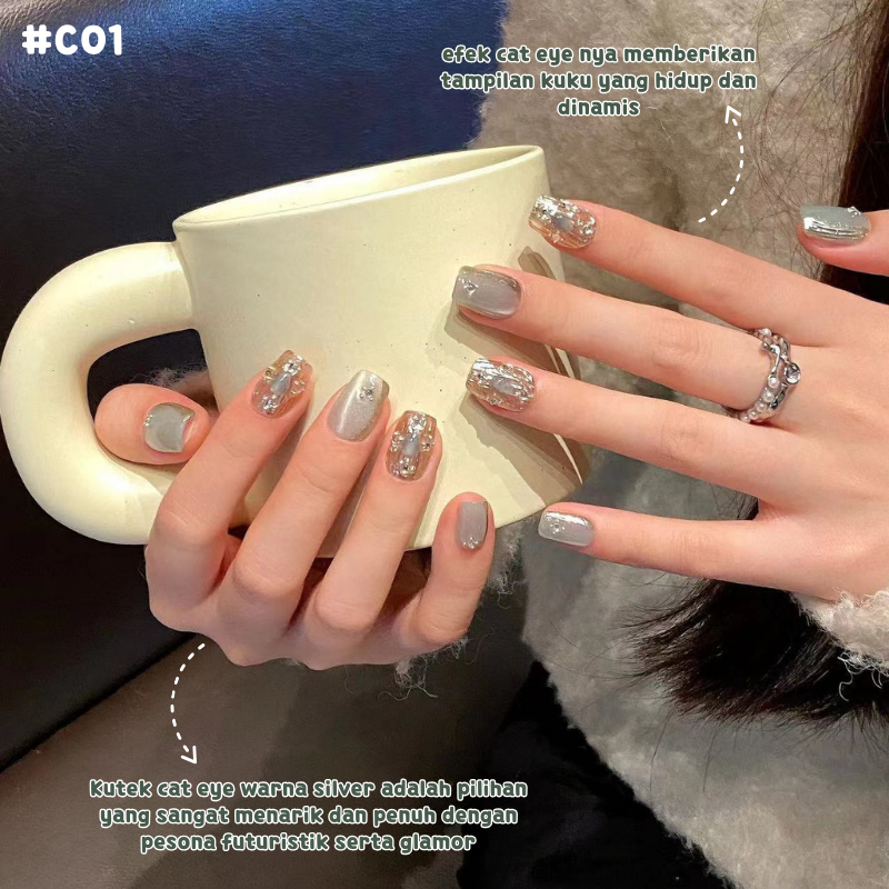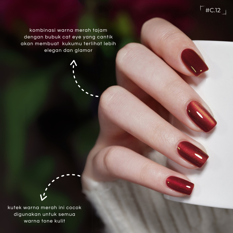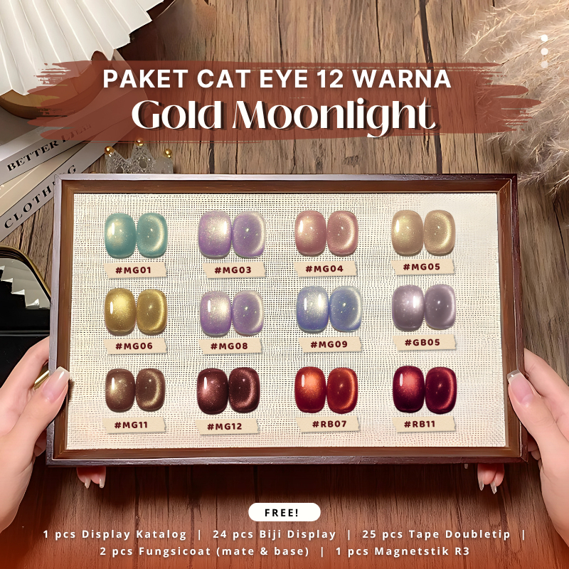 Paket Rising Lady Gold Moonlight Cat Eye Magnetic Gel Nail Polish / Kutek Cat Eye 12 Colour Free Display Nails Fungsi Co