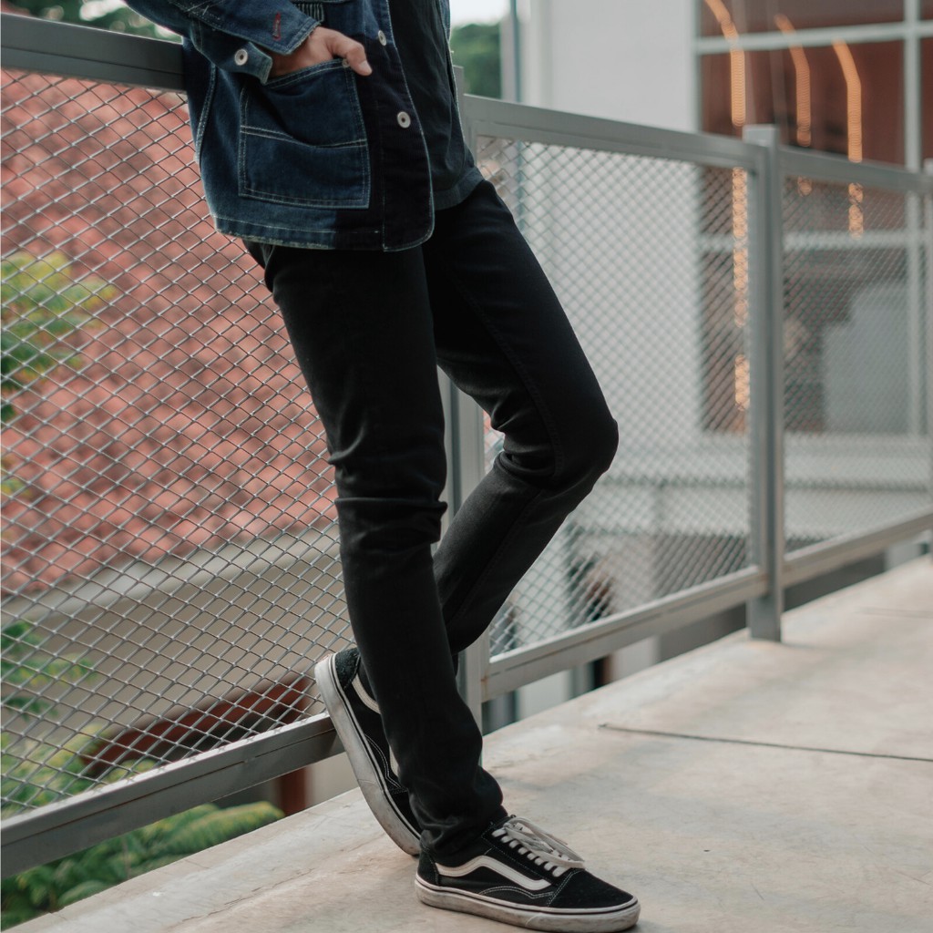 SUPEREGO - CELANA JEANS PRIA HITAM SKINNY BLACK STRETCH 12OZ ORIGINAL