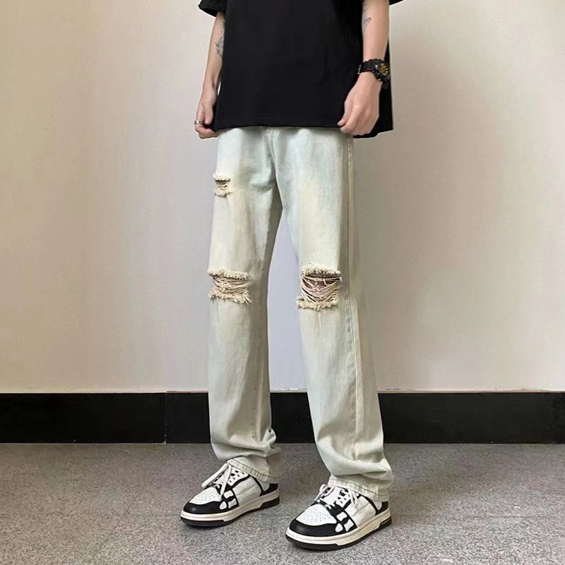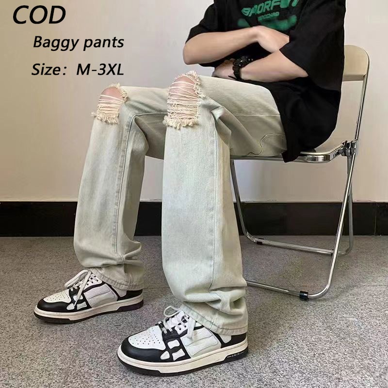 Celana jeans pria sobek retro baggy pants celana denim panjang dewasa cowok robek casual size S-3XL korean style