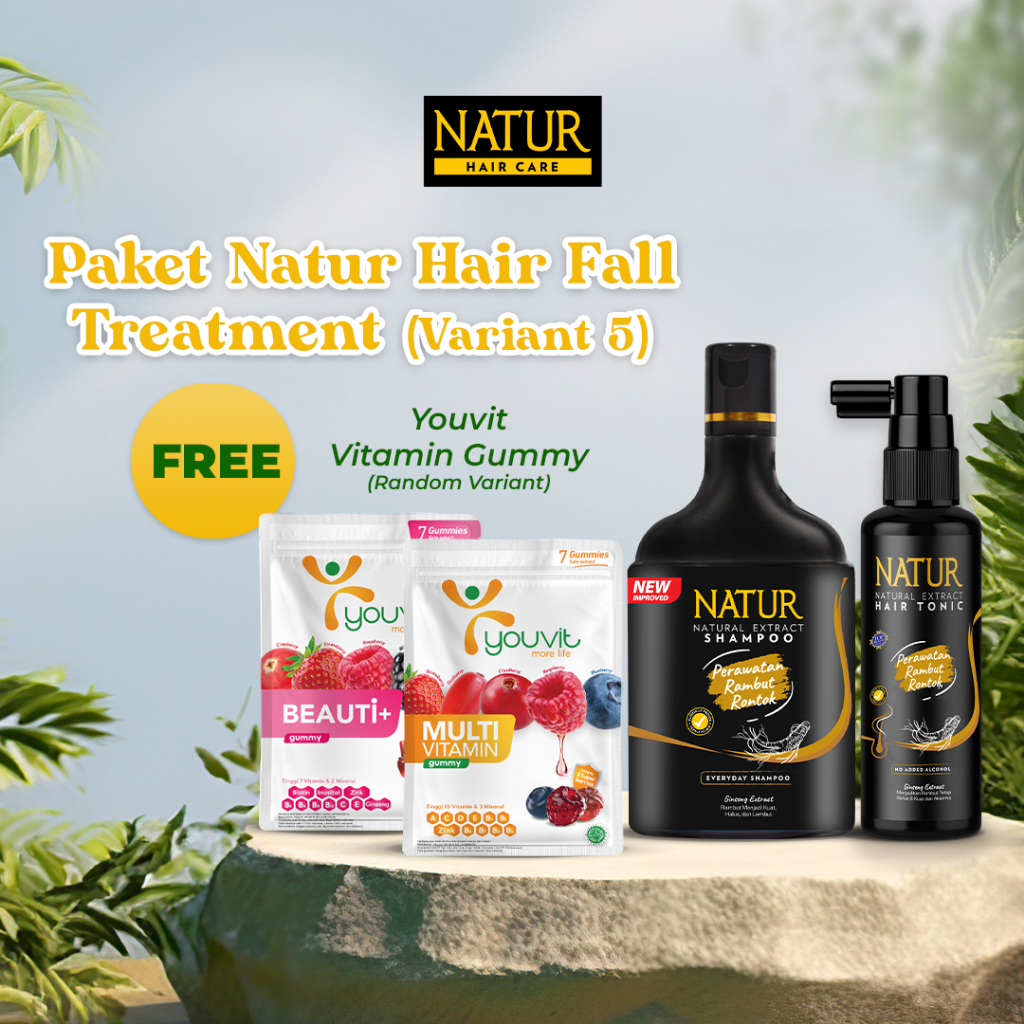 NATUR Shampoo & Hair Tonic 2 In 1 Ginseng Paket Shampoo Tonik Perawatan Rambut Rontok BPOM