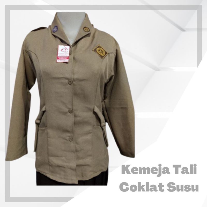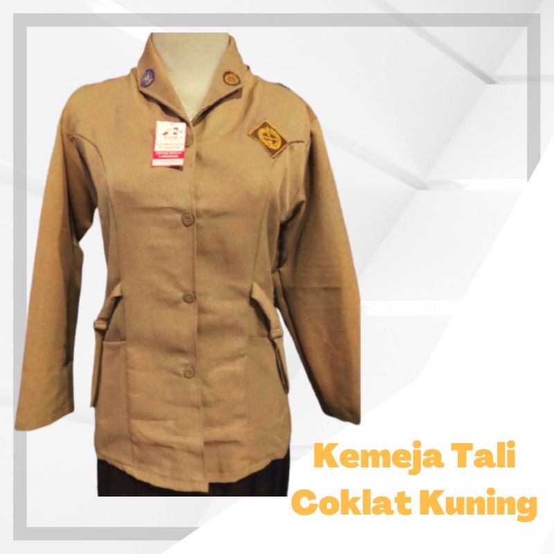 Baju Seragam Sekolah Pramuka SD SMP SMA Kemeja Pramuka Pembina / Tali Samping Lengan Panjang Coklat Susu dan Coklat Korjasena/Kuning untuk Putri Jumbo