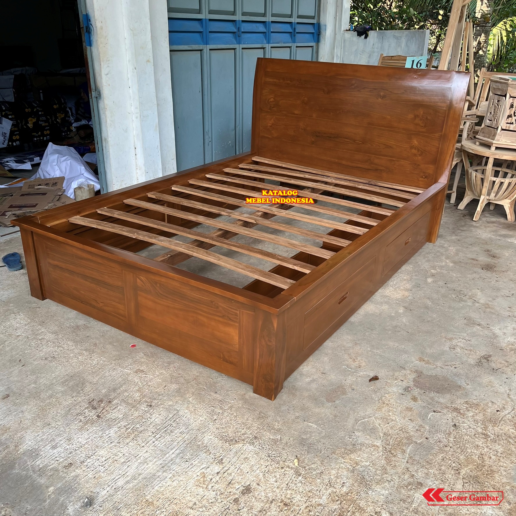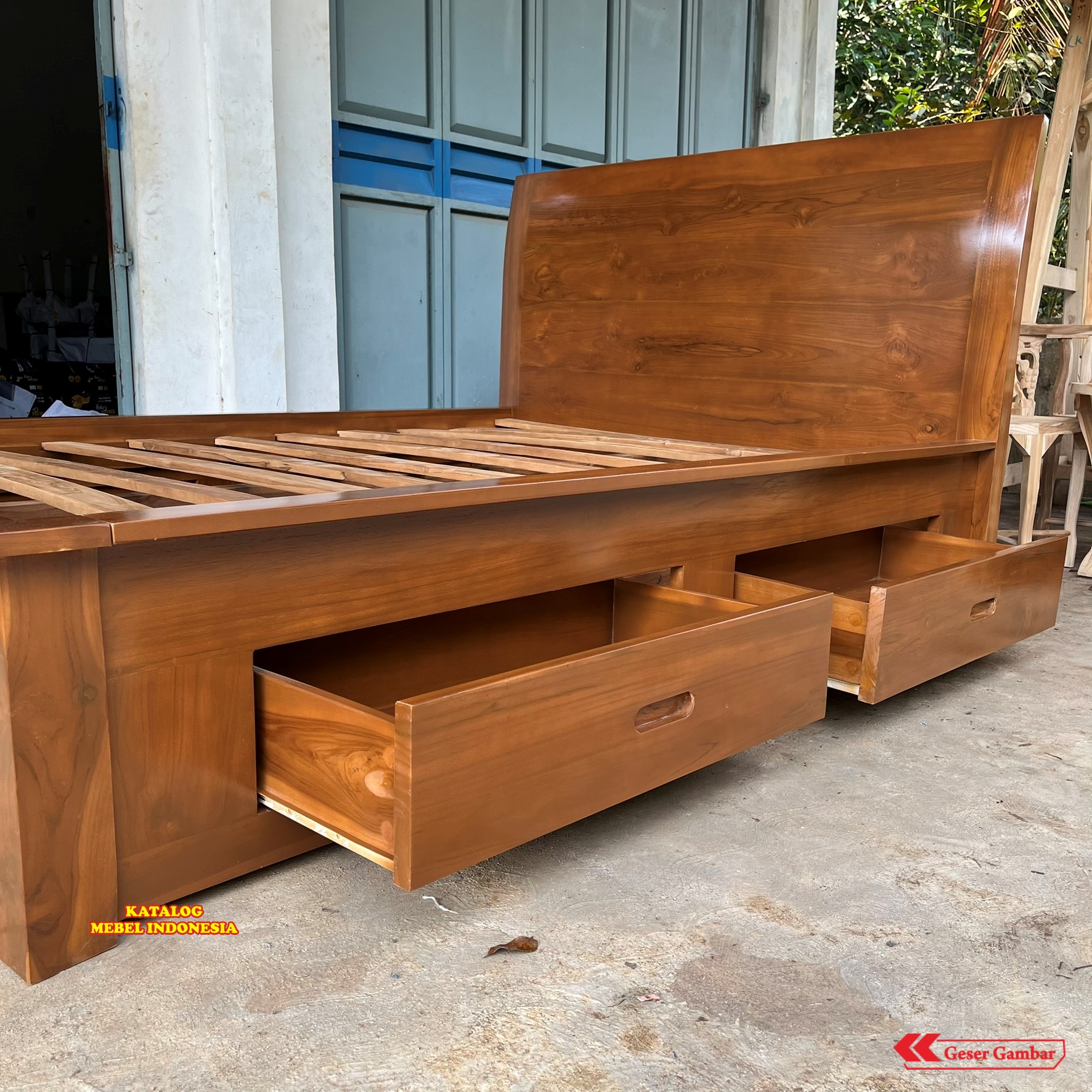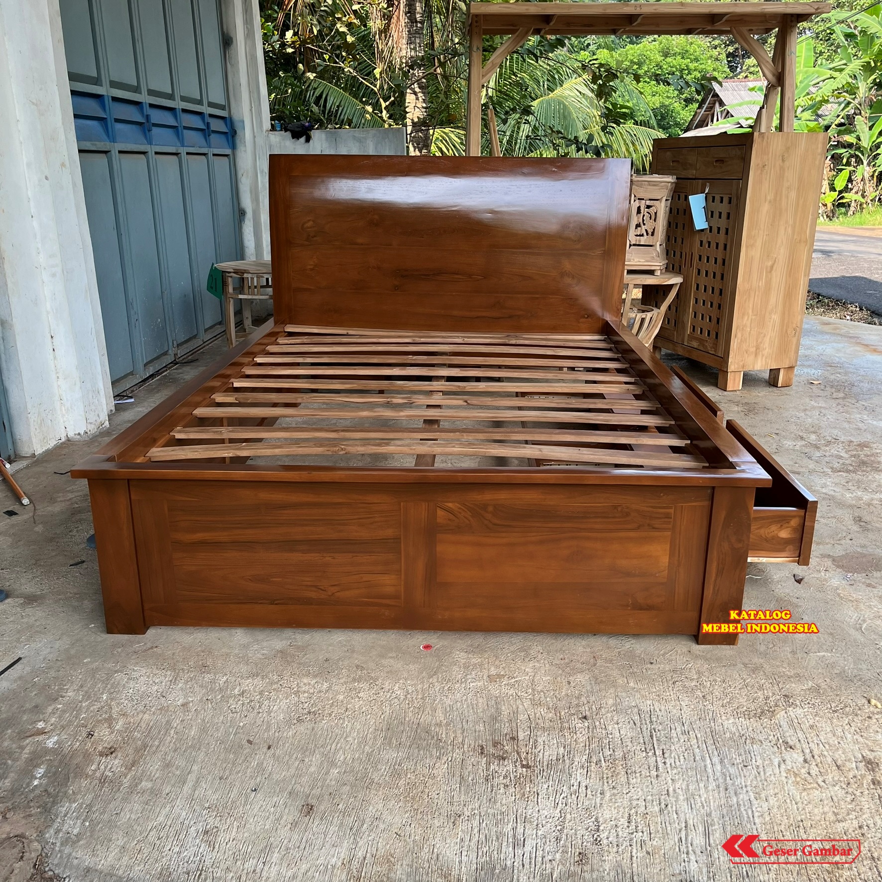 TEMPAT TIDUR LACI MINIMALIS KAYU JATI JEPARA - DIPAN STORAGE MODERN POLOS TERLARIS