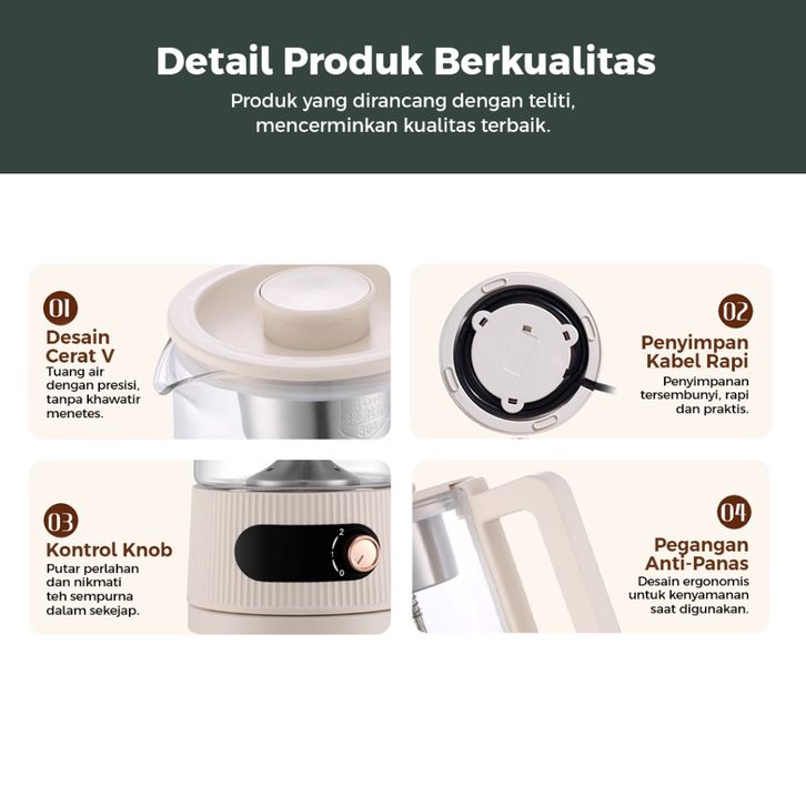 GASCOMP Electric Kettle EKK-01 GASCOMP Teko Listrik Kaca Food-Grade 1.2L, Bahan Kaca Low Watt 600W, Aman untuk Susu Bayi