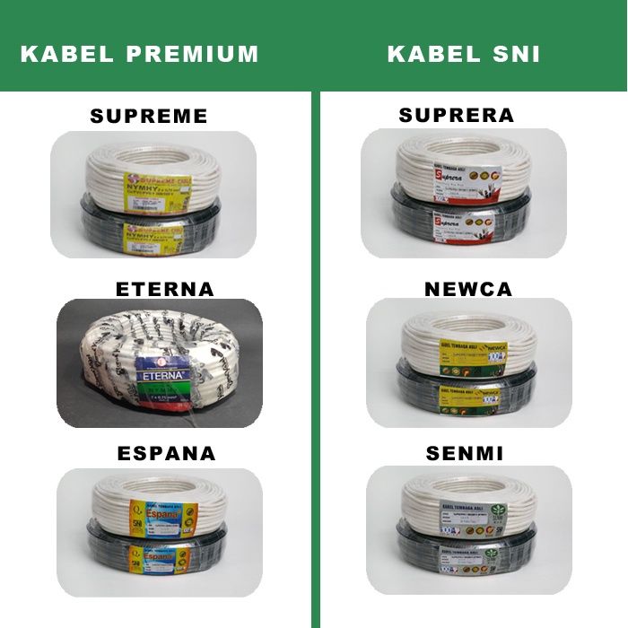 Kabel Listrik Tembaga / Kabel NYMHY 2x1.5mm 3x1.5mm / Kabel Listrik Serabut Merek Eterna Supreme Espana Newca Suprera Se