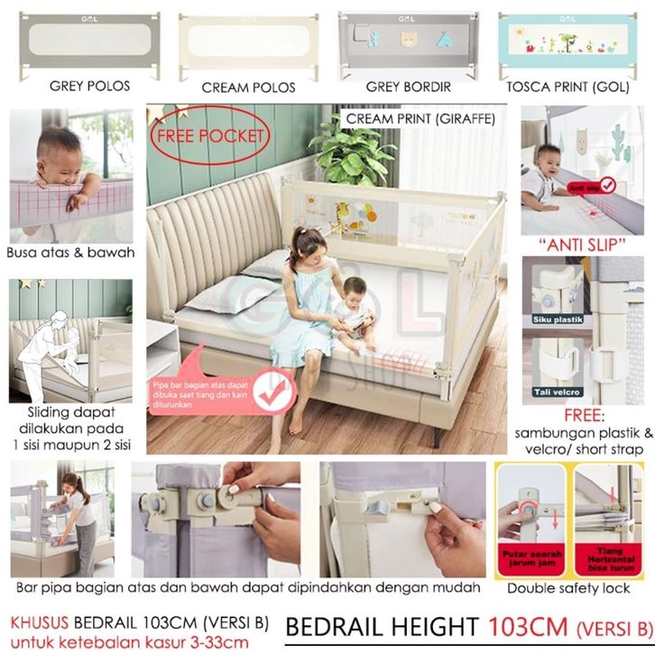 GOL Baby Bedrail Pagar Kasur Pengaman Baby Pembatas Kasur Pagar Bayi Strong & Ekstra Extra Tall Bedguard Fence Pengaman