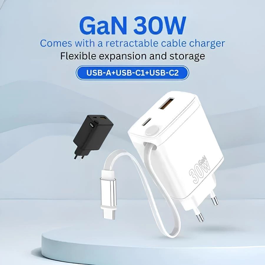 [Star]Charger Fast Charging GaN6 PD 30W Dual Port + Retractable Kabel Data Type C