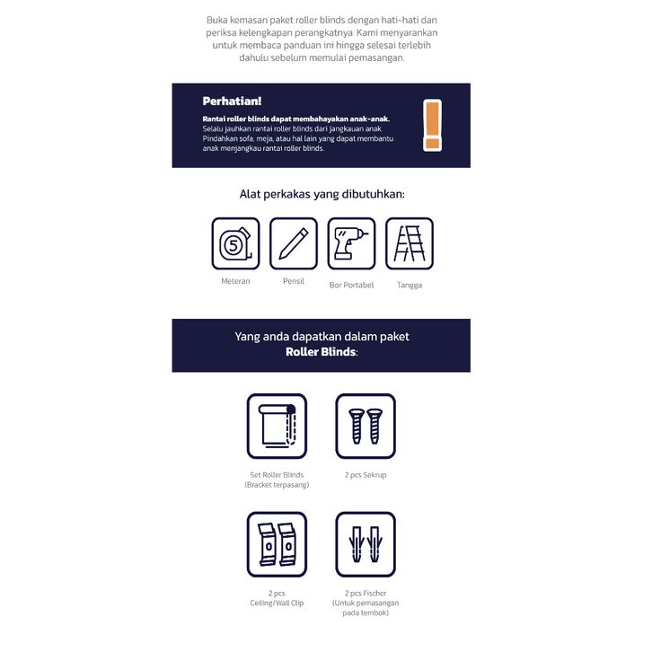 Roller Blind Black Out (99%) Tirai Jendela Gulung dengan Headrail Chain Standar