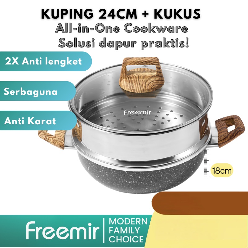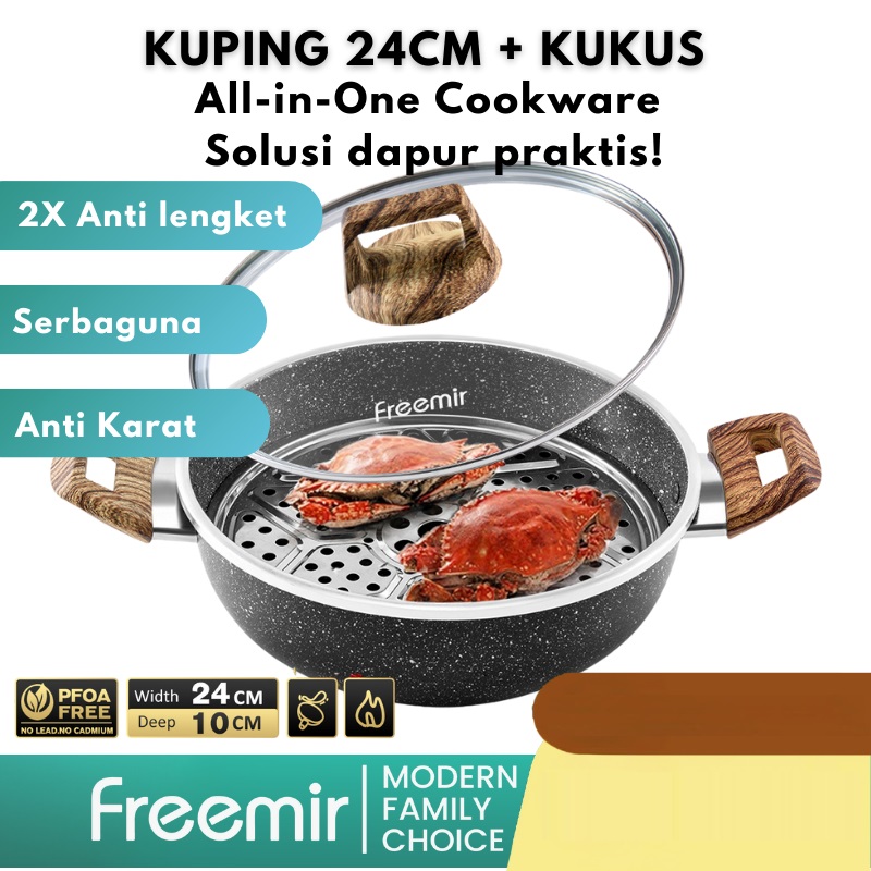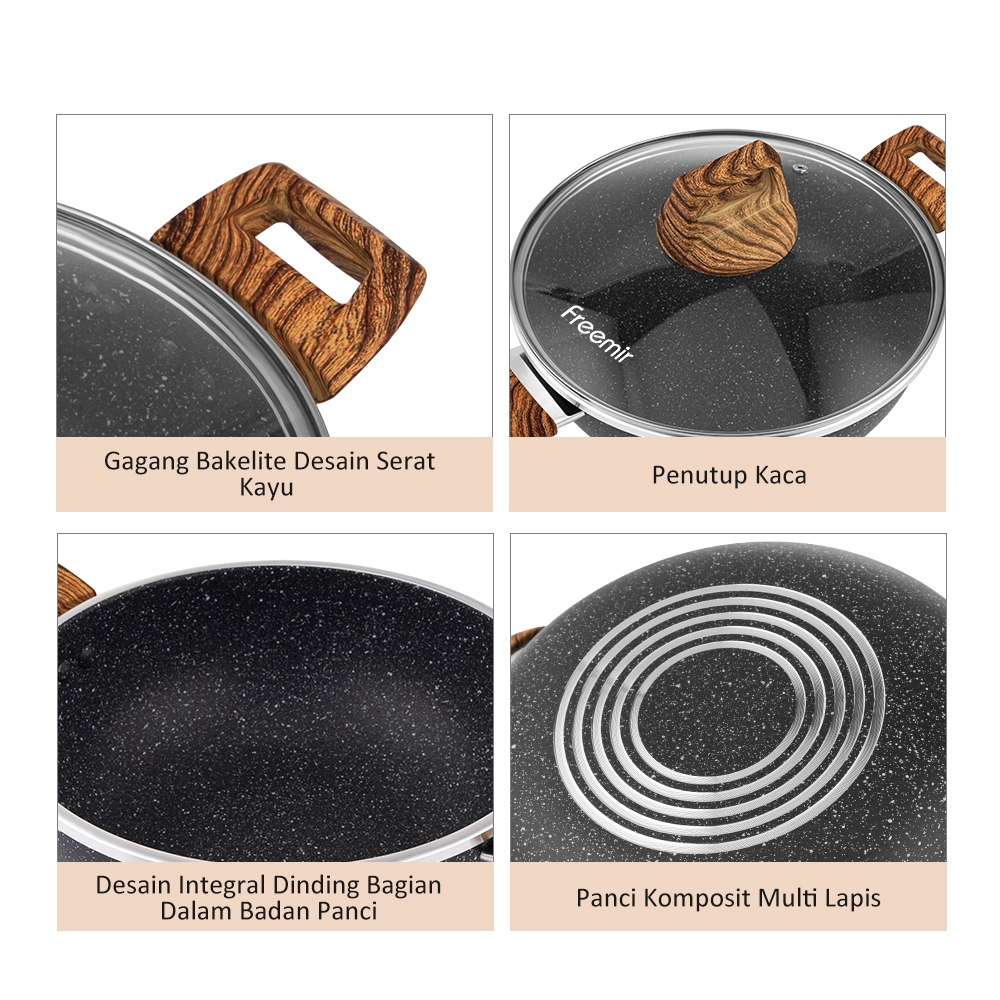 Panci Kukus Wajan Kuping Granite 24cm tinggi 10cm Granite Anti Lengket Tanpa Minyak Berkualitas
