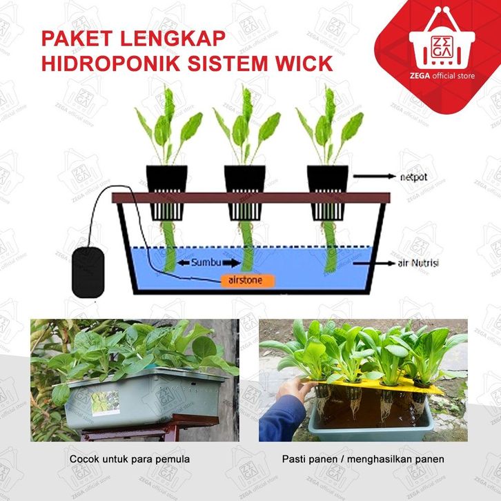 Paket Hidroponik Lengkap sistem wick / Wick System 12 Lubang