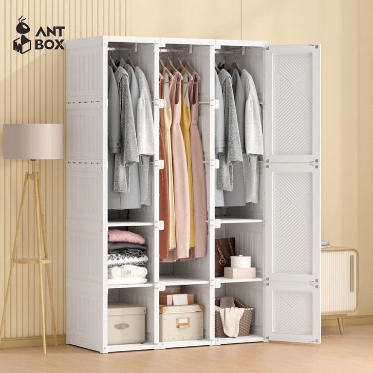 ANTBOX Lemari Pakaian Putih 15 Box 3 Gantungan 890L Wardrobe Minimalis Lemari Baju Plastik Lipat