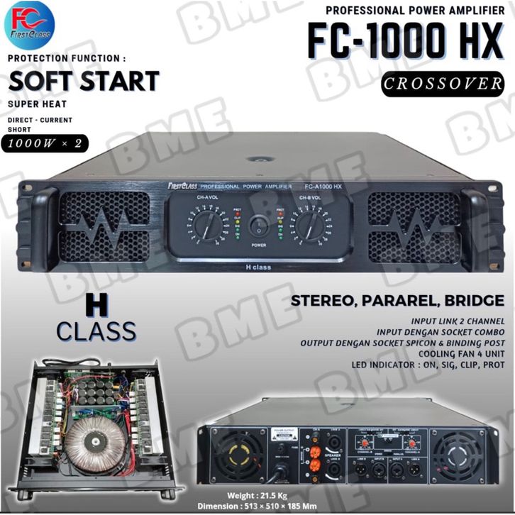 PROFESSIONAL POWER AMPLIFIER H CLASS FIRSTCLASS FC-1000 HX 1000WATT X2