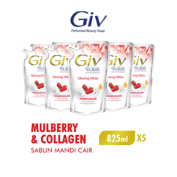 GIV WHITE SABUN MANDI CAIR COLLAGEN MULBERRY POUCH 825 ML X5