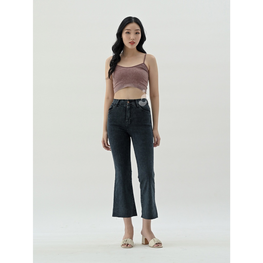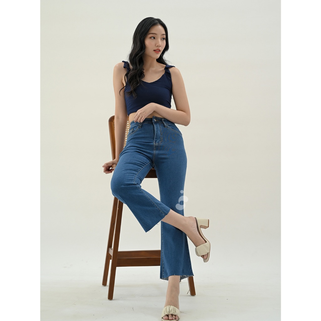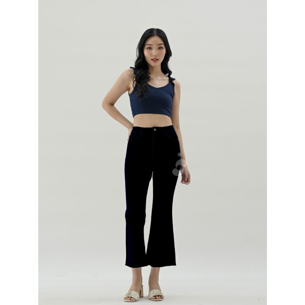 SHENELIN CELANA PANJANG WANITA JEANS UNFINISHED HIGHWAIST FLARE CUTBRAY