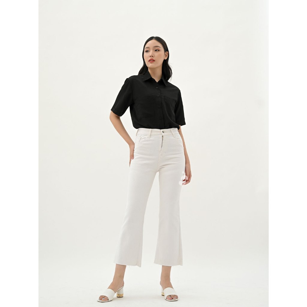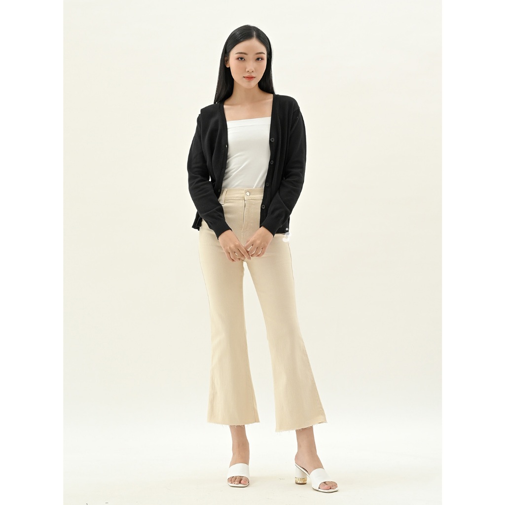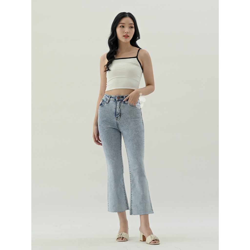 SHENELIN CELANA PANJANG WANITA JEANS UNFINISHED HIGHWAIST FLARE CUTBRAY
