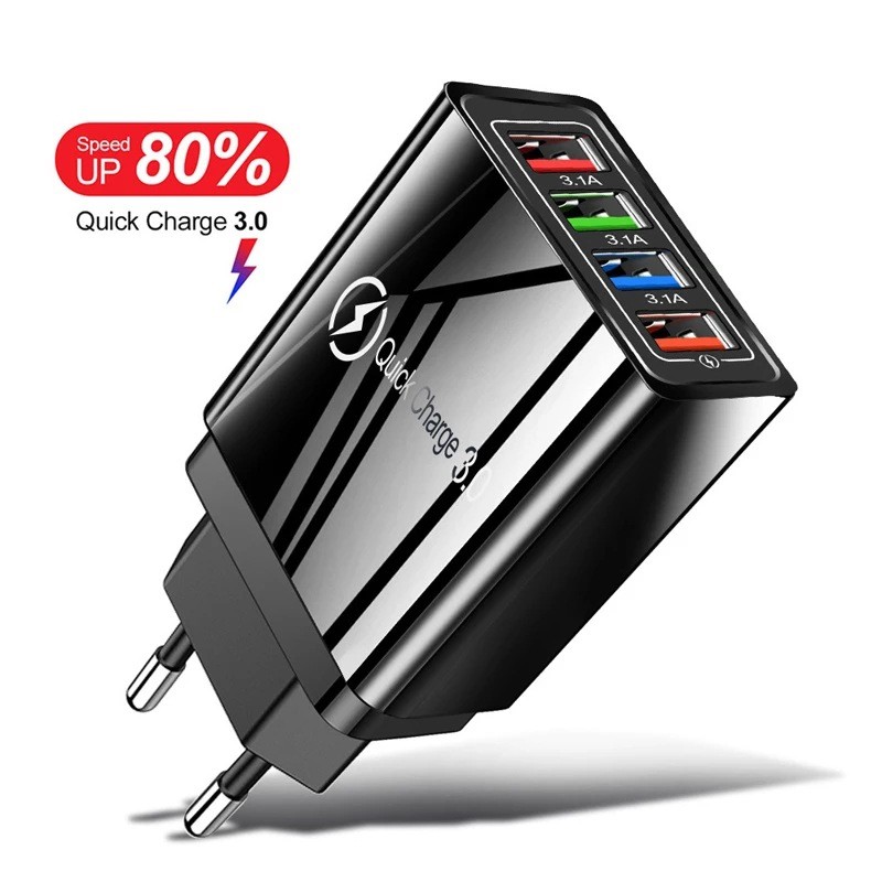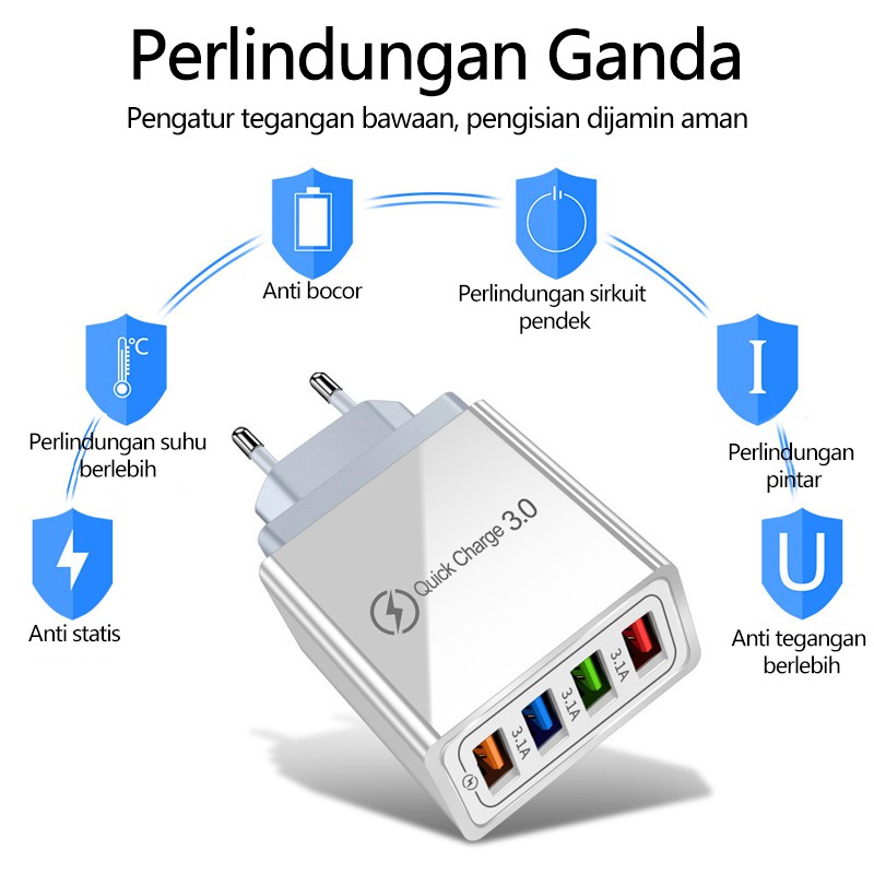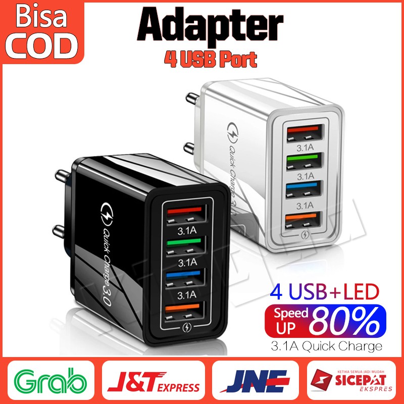 Adapter Charger 5V 3.1A 4 Port USB Quick Charging Fast Charging Pengisian Daya Cepat+Lampu LED