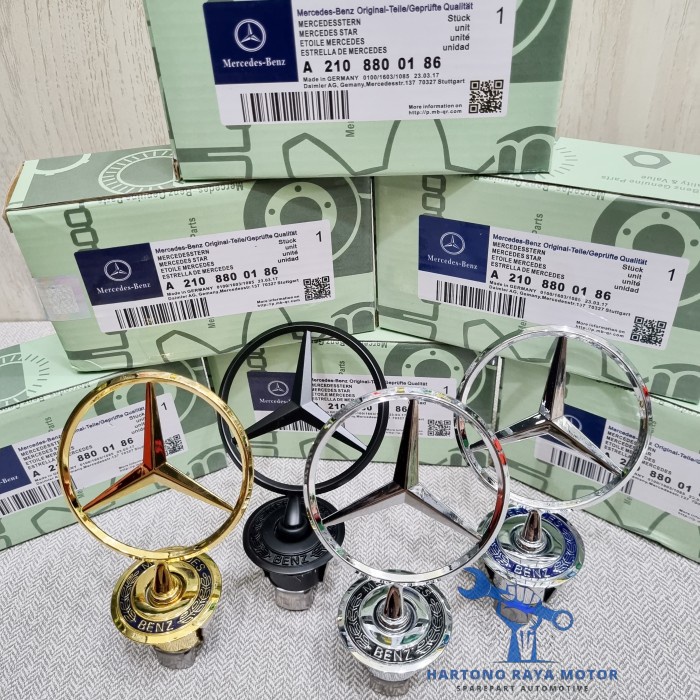 Kap Mesin Logo Bintang Mercedes Benz Ori Emblem Hood Star Mercy Silver Biru