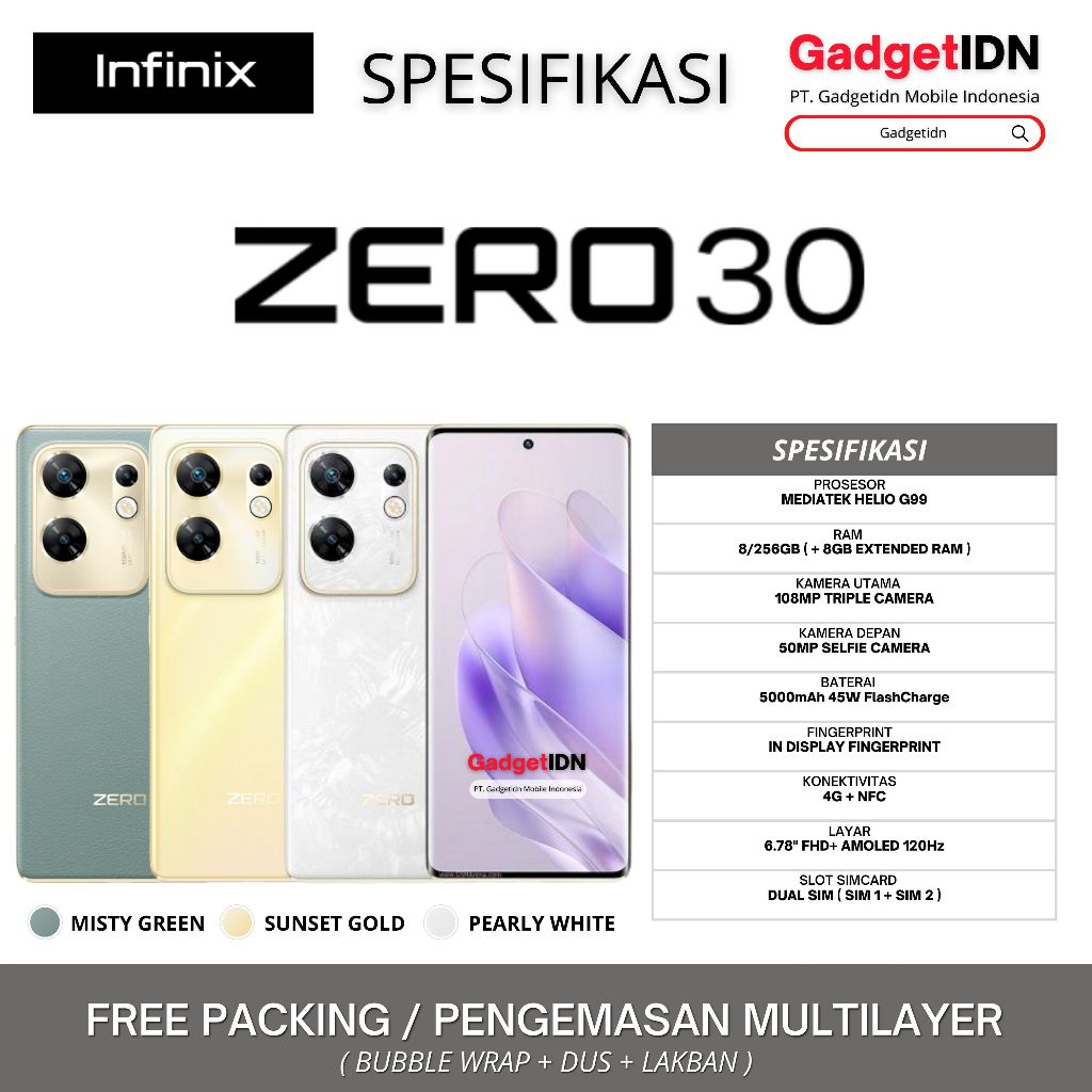 INFINIX Zero 30 NFC 8/256GB ( +8GB Extended Ram ) Garansi Resmi Infinix Indonesia