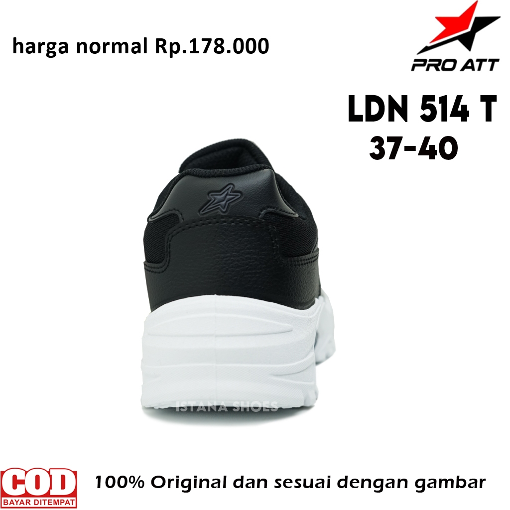 SEPATU SEKOLAH LAKI LAKI PEREMPUAN SD SMP SMA REMAJA PRO ATT LDN 514, HITAM PUTIH SEPATU LARI SNEAKERS