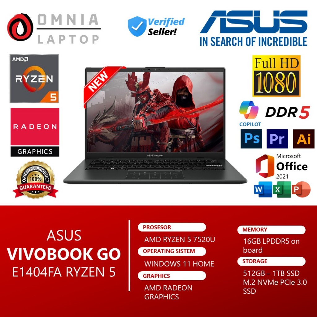 PROMO Asus Vivobook Go 14 E1404FA Amd Ryzen 5 7520U 16GB DDR5 512GB 1TB SSD FHD Windows 11
