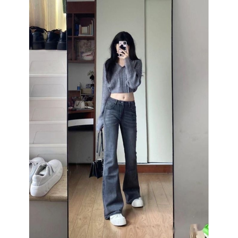 CELANA JEANS CUTBRAY RETRO HIGWAIST STRECH (MELAR) CELANA CUTBRAY KOREAN STYLE WHISKER RETRO