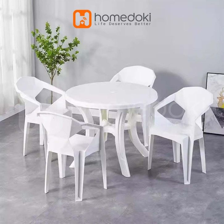kursi teras depan rumah Homedoki Kursi Plastik Kursi Makan Kursi Outdoor Kursi Plastik Sandaran terlaris