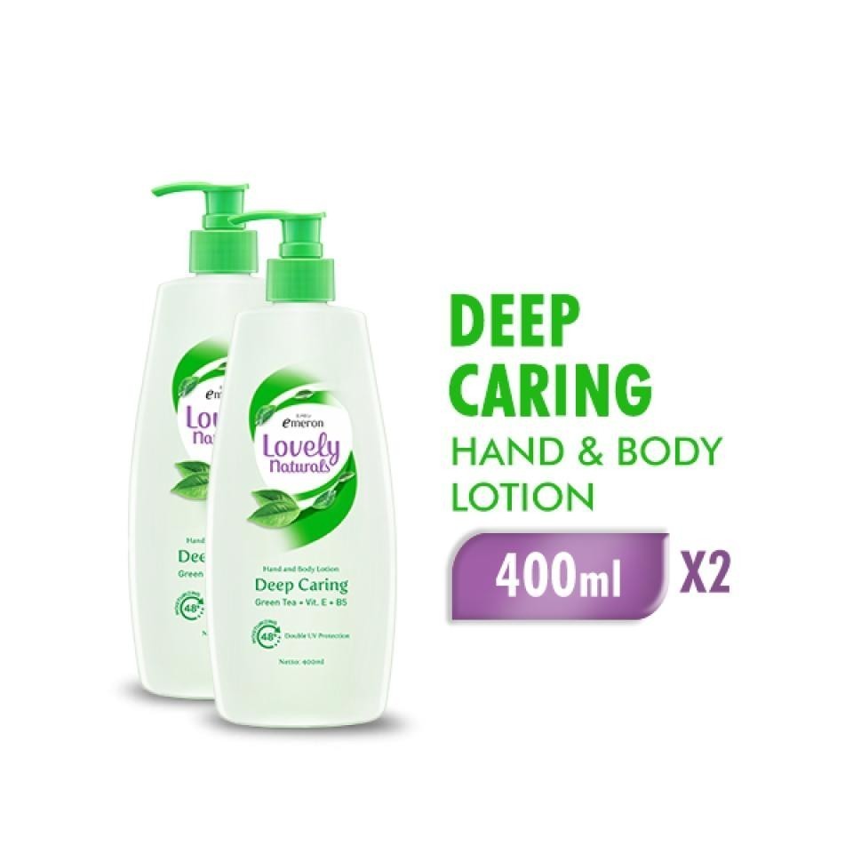 EMERON LOVELY NATURALS HAND & BODY LOTION MOISTURIZING DEEP CARING GREEN TEA 400 ML X2