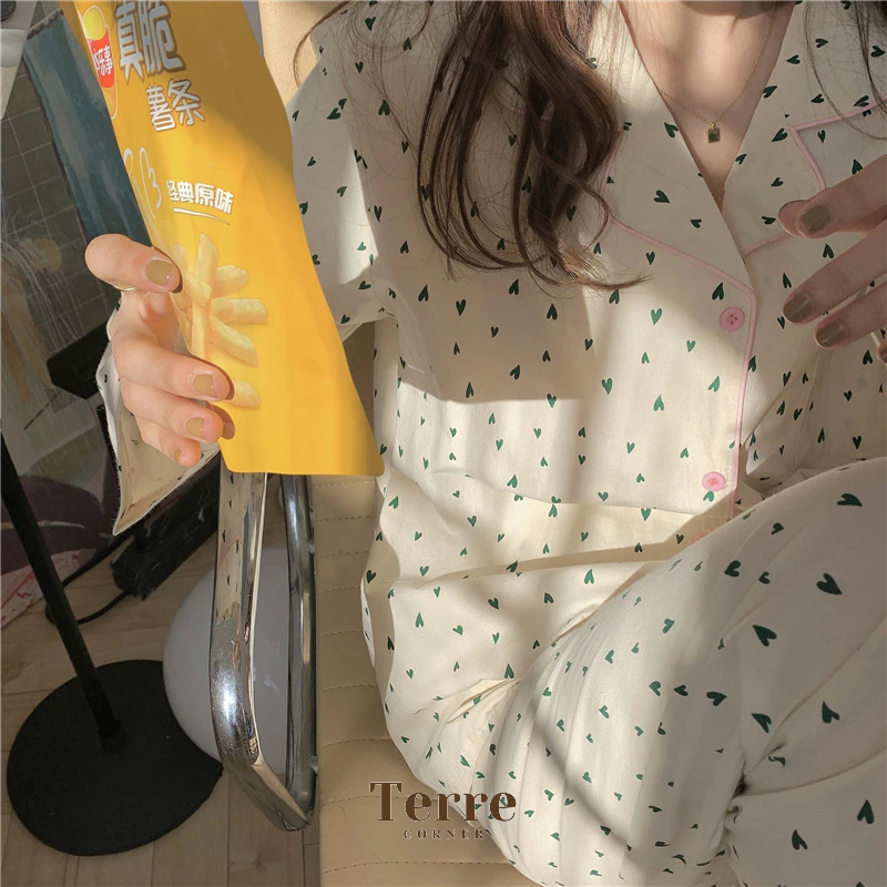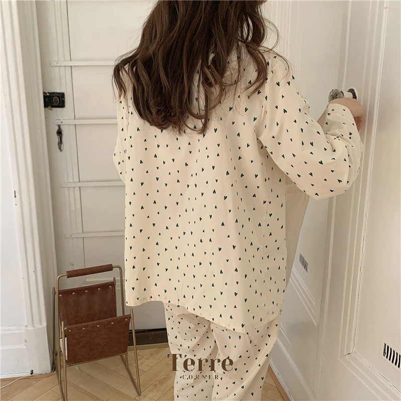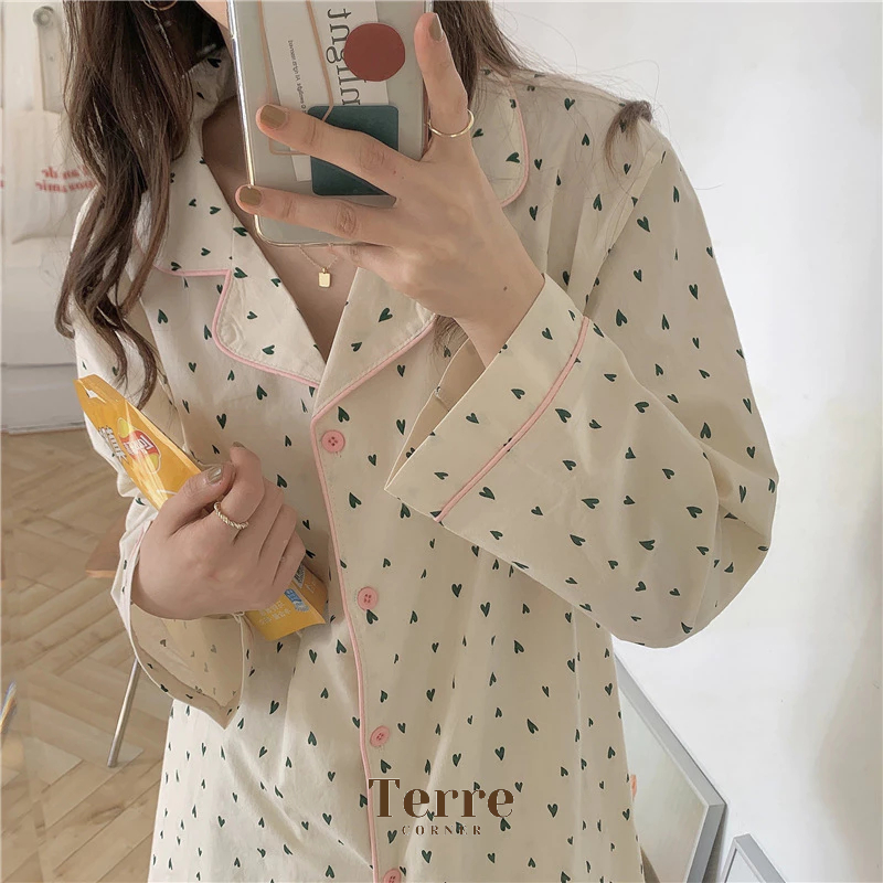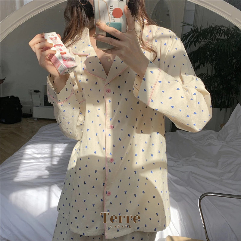 PIYAMA WANITA TANGAN PANJANG BAJU TIDUR KOREAN STYLE MOTIF POLKADOT