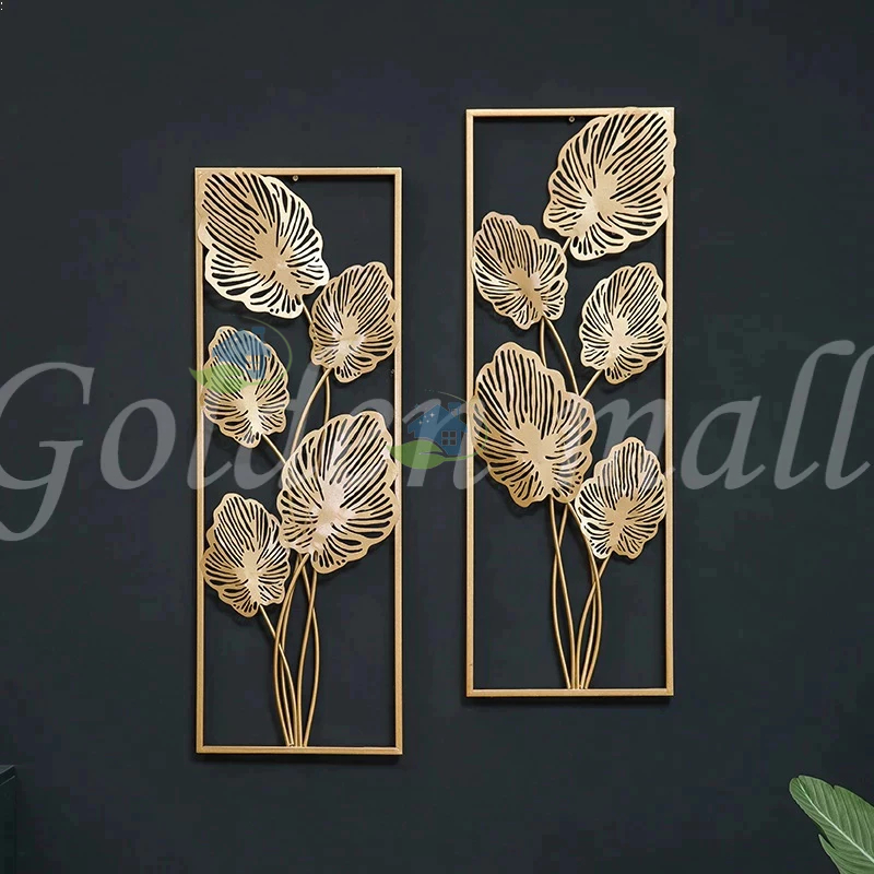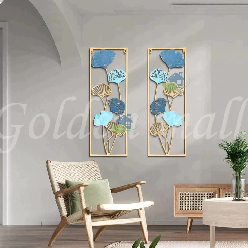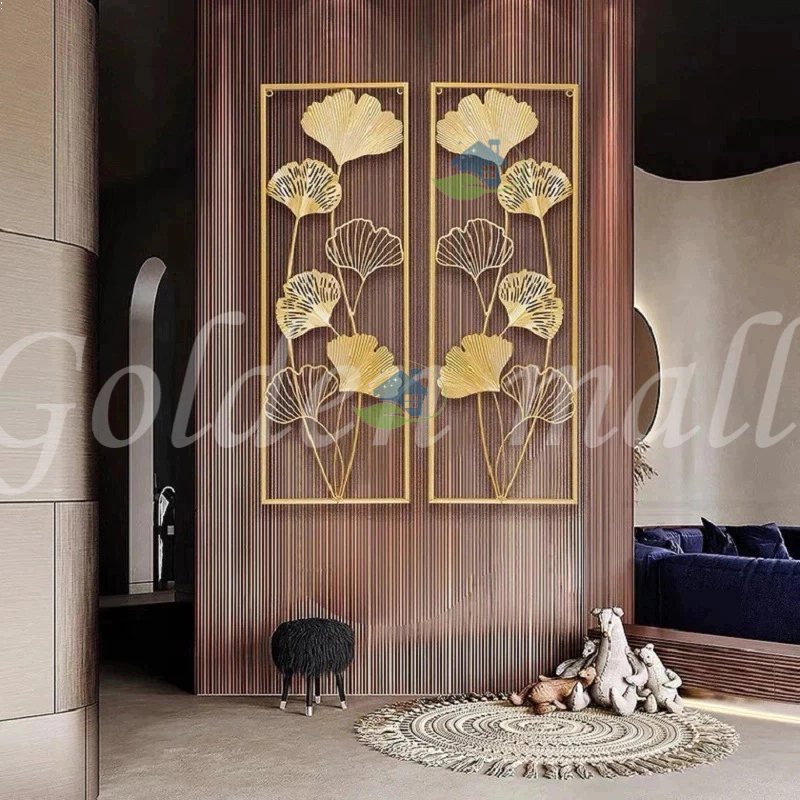 Hiasan Dinding Aesthetic Ruang Tamu Metal Gold - Wall Decor Nordic Frame Daun Ginkgo & Pajangan Dinding Besi Anti Karat