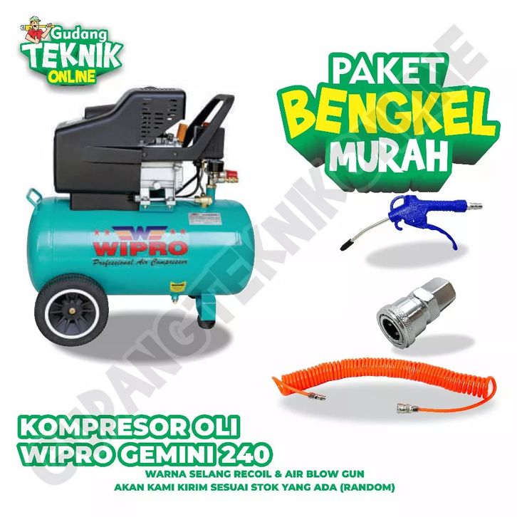 Kompresor Angin Udara 24L WIPRO GEMINI 240 1Hp / Portable Air Compressor 24 Liter 240 1 Hp WIPRO PAKET LENGKAP