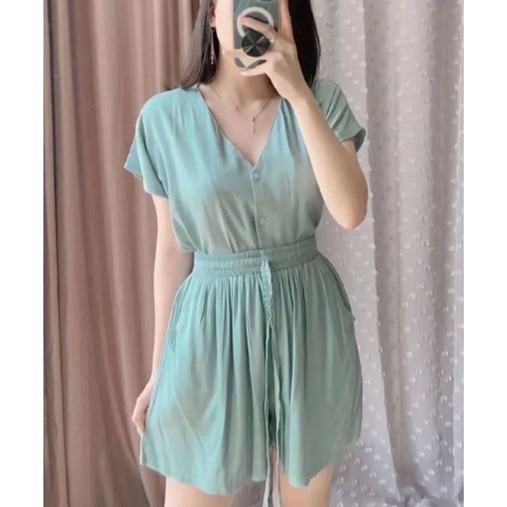 Terbaru... Piyama Rayon Pendek | Baju Tidur Wanita | Piyama Busui Full Kancing Hidup | Babydoll