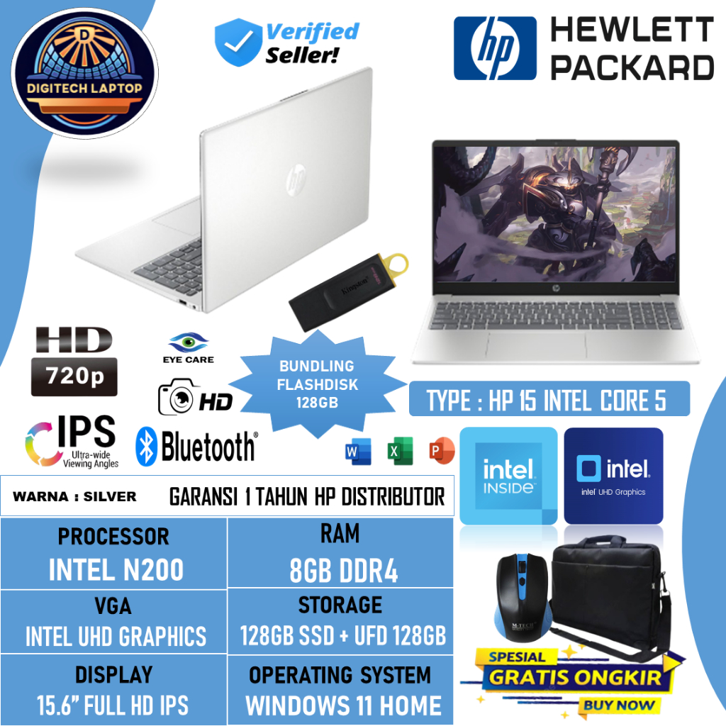 PROMO Laptop HP 15 Intel N200 8GB 128GB+128GB UFD 15.6 Inch HD Windows 11 Home