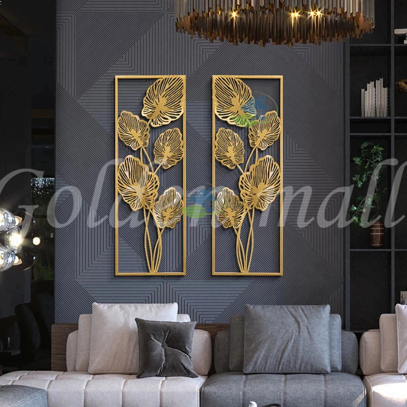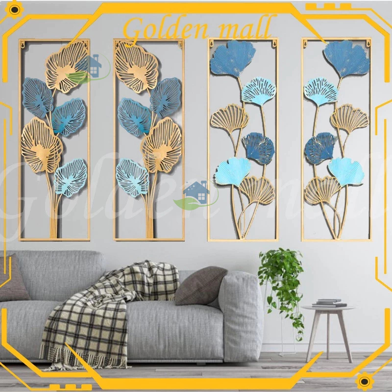 Hiasan Dinding Aesthetic Ruang Tamu Metal Gold - Wall Decor Nordic Frame Daun Ginkgo & Pajangan Dinding Besi Anti Karat