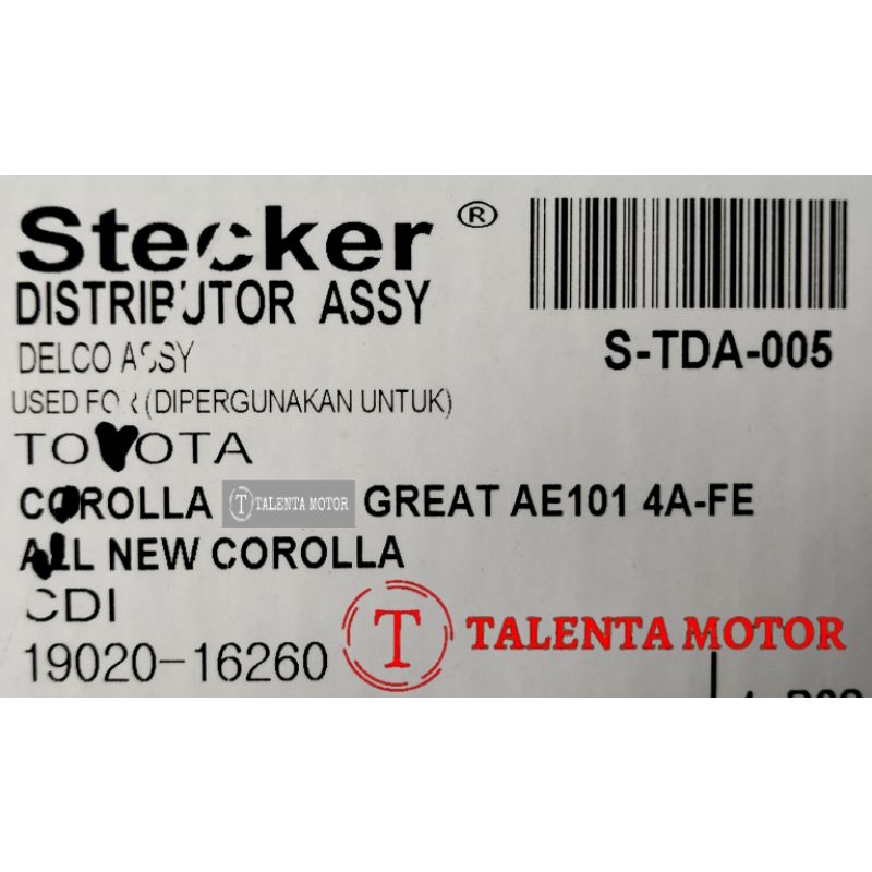 BERGARANSI. DELCO ASSY GREAT + NEW + ALL NEW COROLLA 4AFE AE101 DELKO KOMPLIT / DISTRIBUTOR STECKER