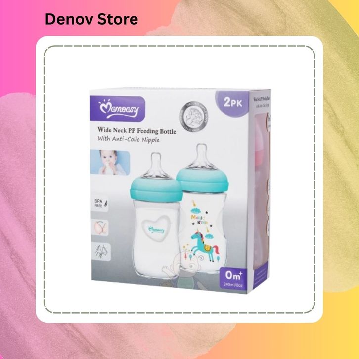 Paket Hemat 2 Botol Susu Bayi Wide Neck Plus Natural Nipple 120ml / 240ml / 330ml MomEasy / Dot Bayi BPA Free