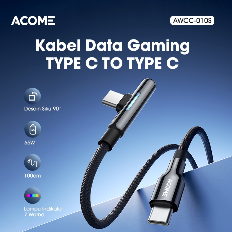 ACOME Gaming Kabel Data Type-C to Type-C / Type-C to Lightning / Data Cable PD 65W Super Fast Charging iPhone / Macbook