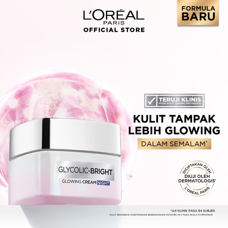 Night Cream L'Oreal Paris GlyCOOLIc Bright Glowing Night Cream - 15/30mili Skin Brightening Krim Malam Pelembab Loreal