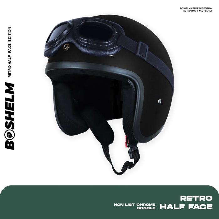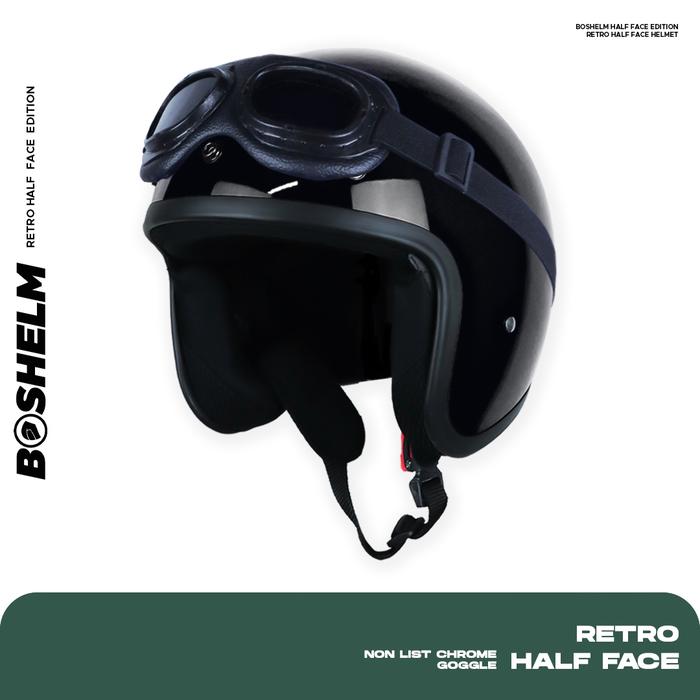 Helm Retro Kacamata Goggle Helm Half Face SNI - CREAM GLOSSY