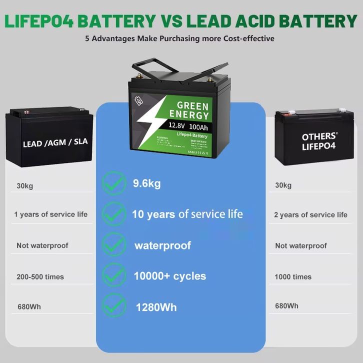 GREEN ENERGY Baterai lifepo4 12V 100AH/12AH/30AH/50AH Litium Battery 10000 Cycles with BMS Solar Baterail