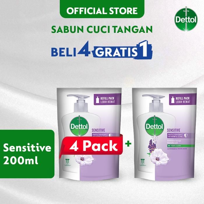 BUY 4 FREE 1 - Dettol Sabun Cuci Tangan Sensitive 200ml